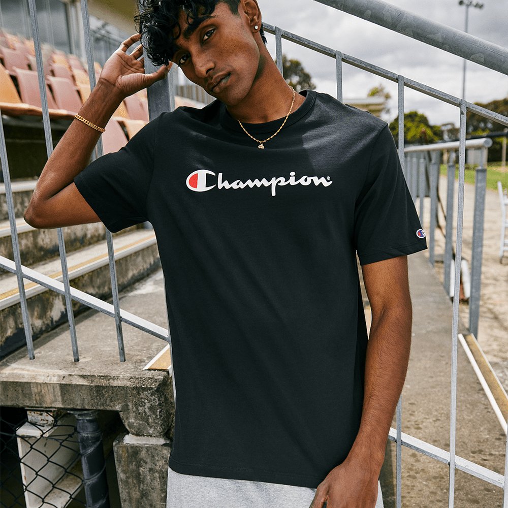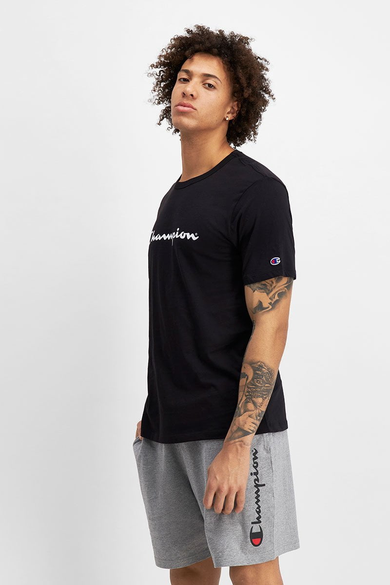CHAMPION MEN’S SCRIPT SHORT SLEEVE BLACK TEE